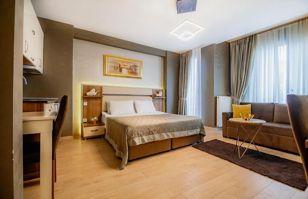 This Istanbul hotel welcomes guests to 10 rooms fitted with an iron and ironing board, and climate control as well as a flat-screen TV with satellite channels. Furnished with a writing desk, they also have sound-proof windows. Bathrooms come with a walk-in shower and a separate toilet, along with hair dryers and complimentary toiletries. You can enjoy views of the city.